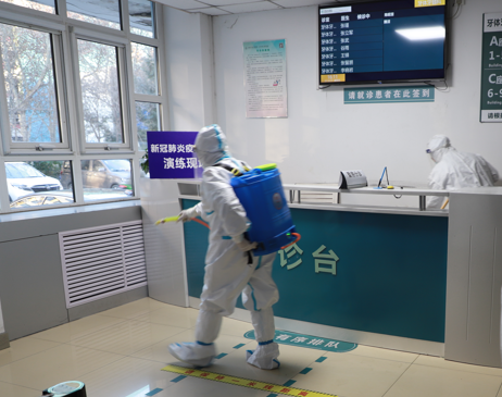 本次演练,通过“公司牙体牙髓科室预检分诊处发现一名发热患者,通过闭环管理护送至伟德体育官网齐鲁医院发热门诊后,新冠病毒核酸检测结果呈阳性”这一假设事件进行了一系列模拟应急处置,演练过程包括发现发热患者、患者转运、情况报告、风险预判、医疗物资调用、落实管控措施、医用防护服穿脱示范、现场消杀等27个场景。