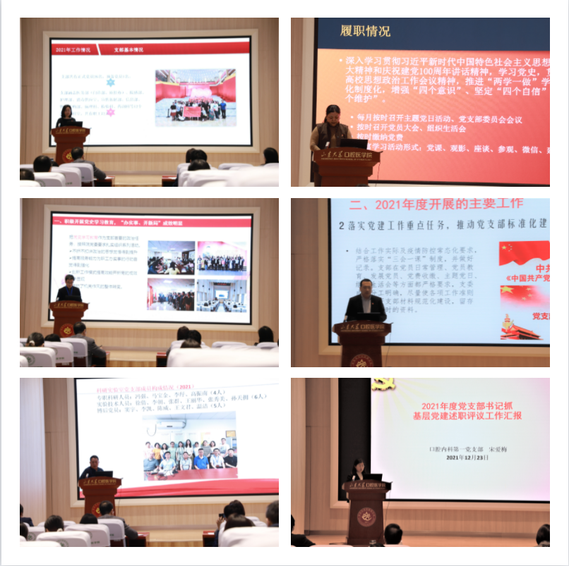 会上,10个教工党支部书记逐一进行述职,分别围绕扎实推进党支部和支部党员开展党史学习教育,落实党建工作责任制,强化政治功能、推进党建业务融合,以高质量党建引领科室高质量发展等方面介绍了支部党建工作取得的主要成绩和特色亮点,深入查摆分析了支部工作中存在的突出问题和书记在履行抓党建工作责任中存在的差距不足,针对性提出了改进工作的思路和举措,认真谋划了2022年要着力抓好的重点工作。联系支部的党委委员和吕波分别对各支部具体工作情况进行了逐一点评。