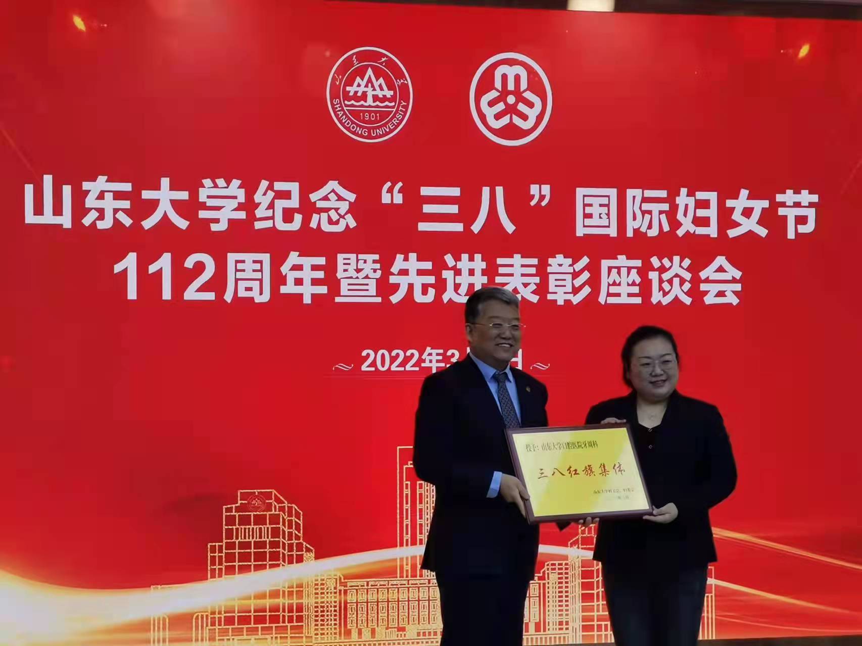 3月8日,伟德体育官网纪念“三八”国际劳动妇女节112周年暨先进表彰座谈会在中心校区明德楼工会厅顺利举行。学院(医院)副经理魏福兰教授、牙周病科分别荣获伟德体育官网“三八红旗手”、“三八红旗集体”荣誉称号。