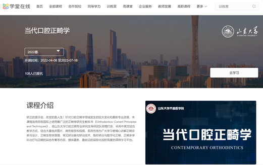 4月8日,BV伟德官方网站正畸教研所研究生课程《当代口腔正畸学》在国内三大主流中文慕课平台之一的“学堂在线”正式上线开课,成为继北京大学后全国第二所在此课程平台上开设口腔正畸学研究生线上课程的高校。