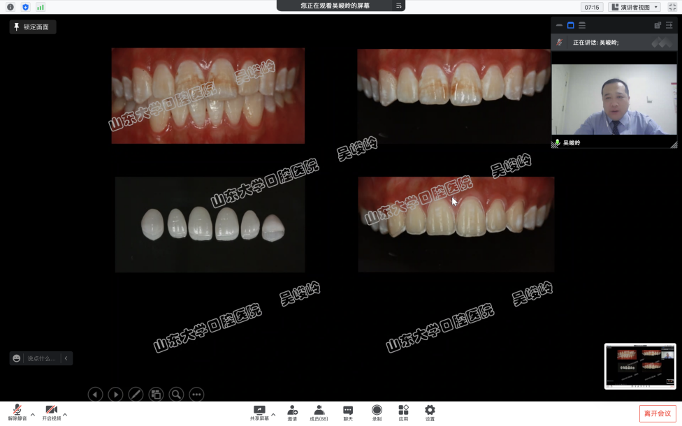 理论授课多样化。为了增加理论课的趣味性,确保线上授课的教学质量,在借助雨课堂、腾讯会议、课程平台等基础上,教师们积极探索理论授课新模式,不断丰富教学内容。其中,《口腔科学》教师朱震坤利用视频、白板、教具等辅助工具为同学们示教拔牙过程,《口腔正畸学》教师刘东旭教授将理论知识与课程思政充分结合,进一步发挥思政育人良好效果。