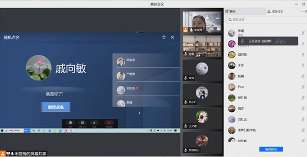 授课结束后,宋爱梅通过雨课堂的“随机点名”功能,请支部党员分享了对本次党课活动的感受和自己开展线上教学的经验体会。支部党员刘红蕊分享到,在之前的教学活动中,从教师角色出发,体会不到员工的感受。今天通过角色转换,感受到以前给员工完成课堂测验的时间过短,以后可以相应改进。在讨论中,支部党员同志围绕当前线上教学存在的短板提出了相应改进意见,建议员工可以按本学期课表安排,统一进入原定教室学习,更利于活跃课堂气氛和进行师生互动。