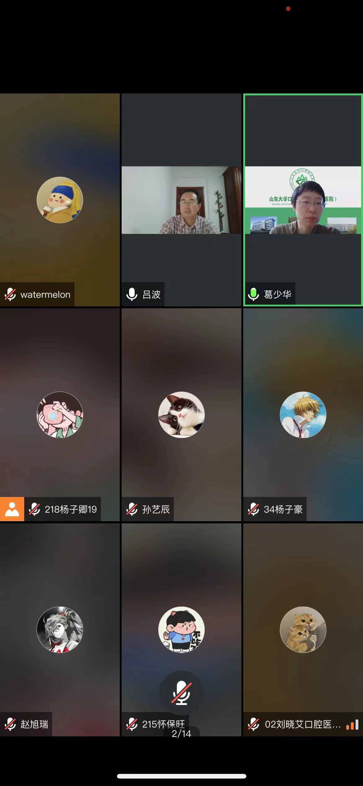 5月3日,BV伟德官方网站(口腔医院)党委书记吕波,党委副书记、经理葛少华通过线上视频连线方式,为2021级全体同学上了一堂特殊的疫情防控“云党课”。党委副书记齐山华、带队老师齐鲁医学院研教办许文、辅导员熊永妍及2021级全体同学参加。