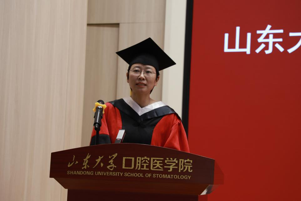 教师代表李敏启教授在发言中将一首汪国真的《热爱生命》赠予同学们,寄语他们要带着学有所成的喜悦和对未来的无限憧憬迈入下一个人生阶段,希望同学们能够在未来的日子里劈波斩浪、勇担重任,为口腔医学事业发展贡献力量。