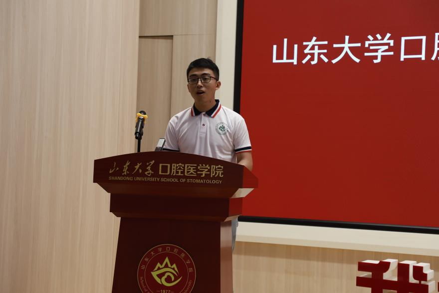 毕业生代表王冠儒回忆了自己在口院的学习与成长经历,表达了对母校、对老师的感激与不舍之情,他表示作为新时代的口腔医学学子,将会持续秉持医学使命,踔厉奋发、笃行不怠,为成长为一名合格的口腔医生不断努力。