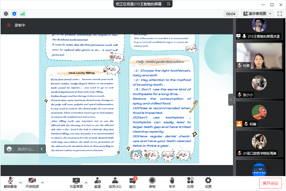 活动中,同学们生动的科普表现形式,流利的英语口语表达,得到了现场评委的一致好评。他们表示,科普是医学领域非常重要的工作,希望同学们要充分整合线上线下各类资源,进一步提高科普创新能力,怀揣求知之心,为传播口腔健康科普最强音不断努力!