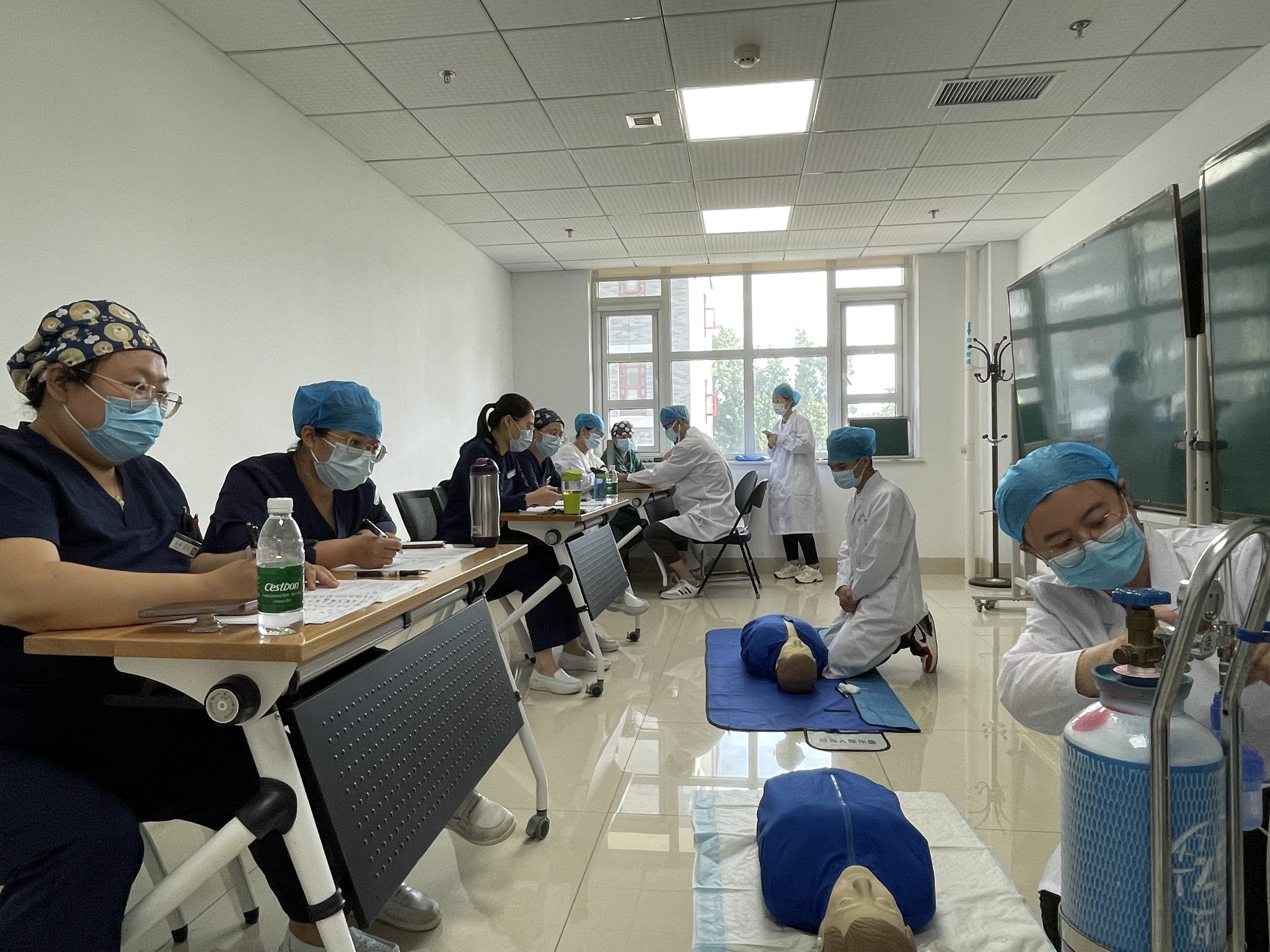 本年度入院教育还增加了基本技能操作模块,包括生命体征测量、吸氧、单人心肺复苏等项目,由护理部具体实施。首先,护理部老师进行理论培训,详细讲解了三项操作的基本要点,现场演示了操作全过程。此后住培部安排了为期3天的操作练习,护理部老师现场指导,纠正住院医师的不规范操作。最后进入正式考核阶段,生命体征测量、吸氧、单人心肺复苏三个站点同时进行考核,每个站点配备两位考核专家。每位考核专家认真、公正地为参加考核的住院医师打分,现场给予反馈。考核不合格的住院医师将参加补考,直至合格。