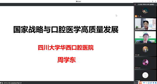 11月9日下午,由伟德体育官网齐鲁医学院主办,BV伟德官方网站承办的“齐鲁医学大讲堂”活动以线上方式举办。活动邀请了四川大学华西口腔医院学术经理、口腔疾病研究国家重点实验室主任、中国口腔医学博物馆馆长周学东教授作了题为《国家战略与口腔医学高质量发展》的讲座。学院(医院)党委书记吕波参会并致辞,经理葛少华主持。齐鲁医学院共90余名师生及管理工作人员参加了讲座。