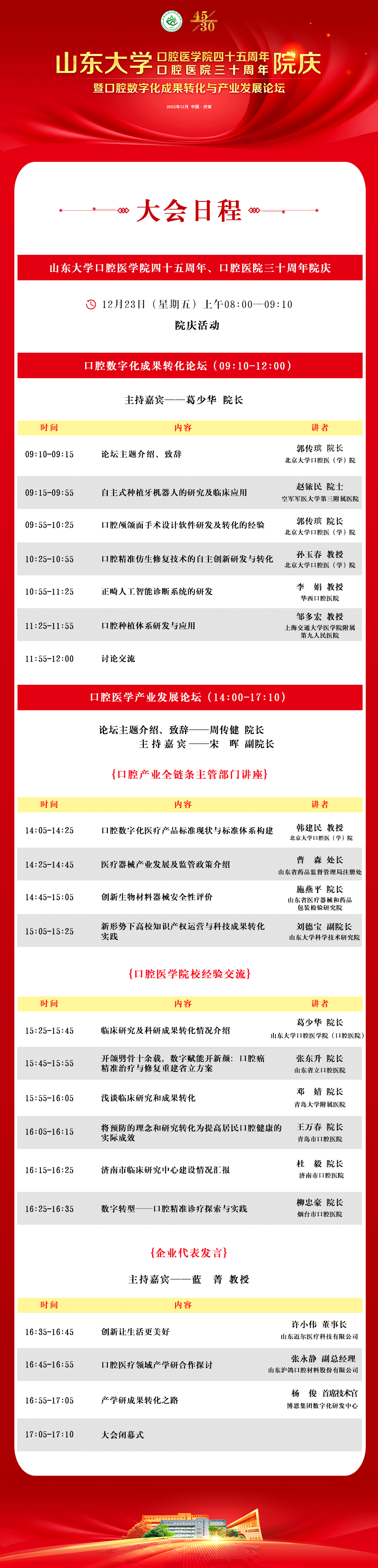 为庆祝BV伟德官方网站建院45周年、伟德体育官网口腔医院建院30周年,兹定于2022年12月23日举办BV伟德官方网站四十五周年、口腔医院三十周年院庆暨口腔数字化成果转化与产业发展论坛。鉴于当前疫情形势,本着简朴务实、学术为主的原则,院庆庆典以线上方式举行,诚邀全院师生医务员工、广大员工和社会各界拨冗观看,共叙情谊,共话发展!