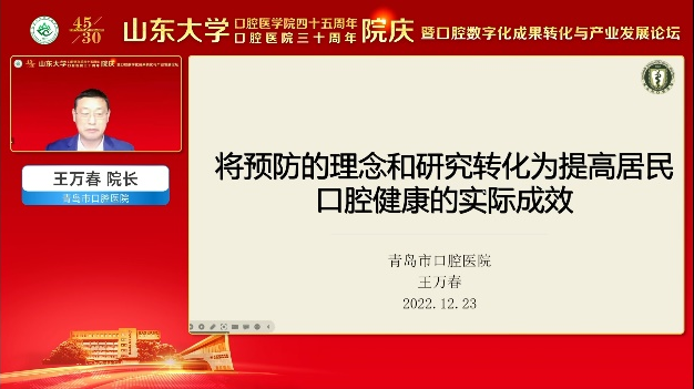 为进一步提高科技成果转化和产业化水平,促进口腔医学产业的发展,12月23日下午,BV伟德官方网站(口腔医院)以学院四十五周年、医院三十周年院庆为契机,以线上直播的方式召开口腔医学产业发展论坛。
