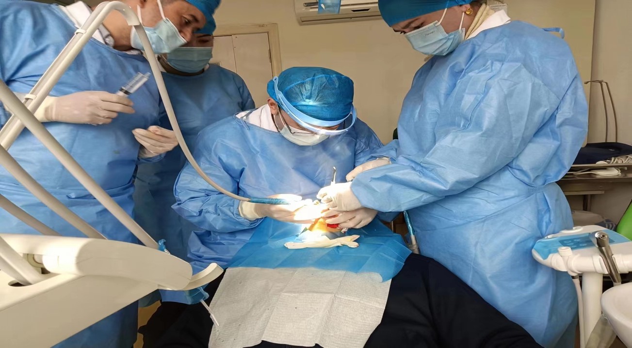 近日,伟德体育官网口腔医院第二批柔性援疆专家梁伟在到达新疆疏勒县人民医院口腔科工作岗位后,充分发挥专业特长,带领团队顺利完成一例根尖倒充手术,成功保住了病人患牙。这是梁伟到任后的首台手术,也是疏勒县人民医院首例根尖倒充手术。