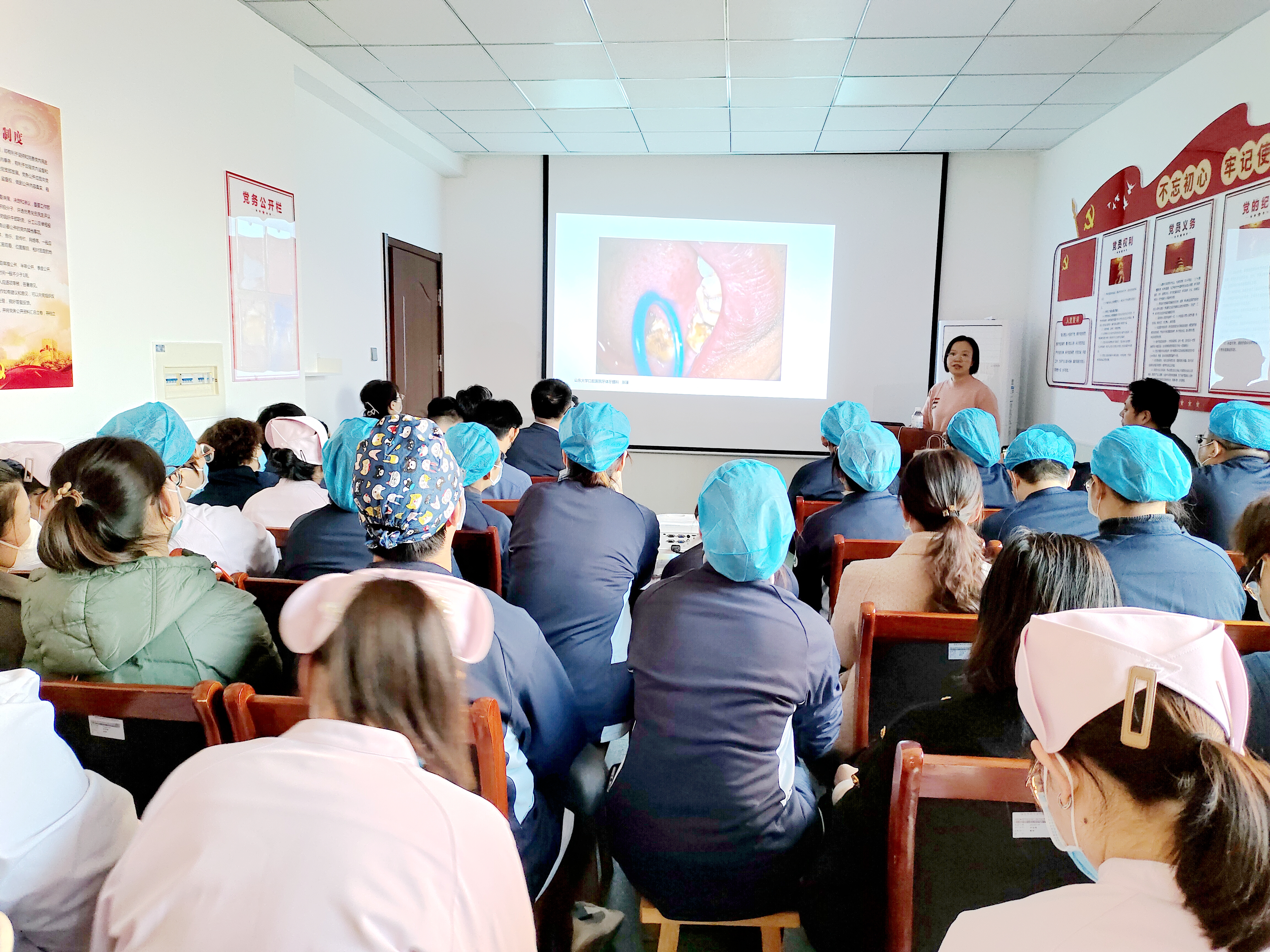 医院牙体牙髓病科主任张瑾、种植科副主任朱震坤、修复科祁冬、正畸科杨恒伟等专业专家分别到相应科室坐诊,针对门诊遇到的疑难病例进行指导,并亲自为口腔疾病患者进行诊治,提出有针对性的治疗方案。在为期两天的活动中,共诊疗患者50余人次,处理疑难病例10余例,让当地百姓足不出户享受到省级专家优质专业的技术服务。期间,专家团队开展现场教学,就骨移植与引导骨组织再生、根管治疗质量提升之路、邻面去釉详解三场业务授课,对临床病例的诊断与治疗与区口腔医院的医护人员进行交流学习,更好地提升区口腔医院医务人员的诊疗服务能力,获得广泛好评。