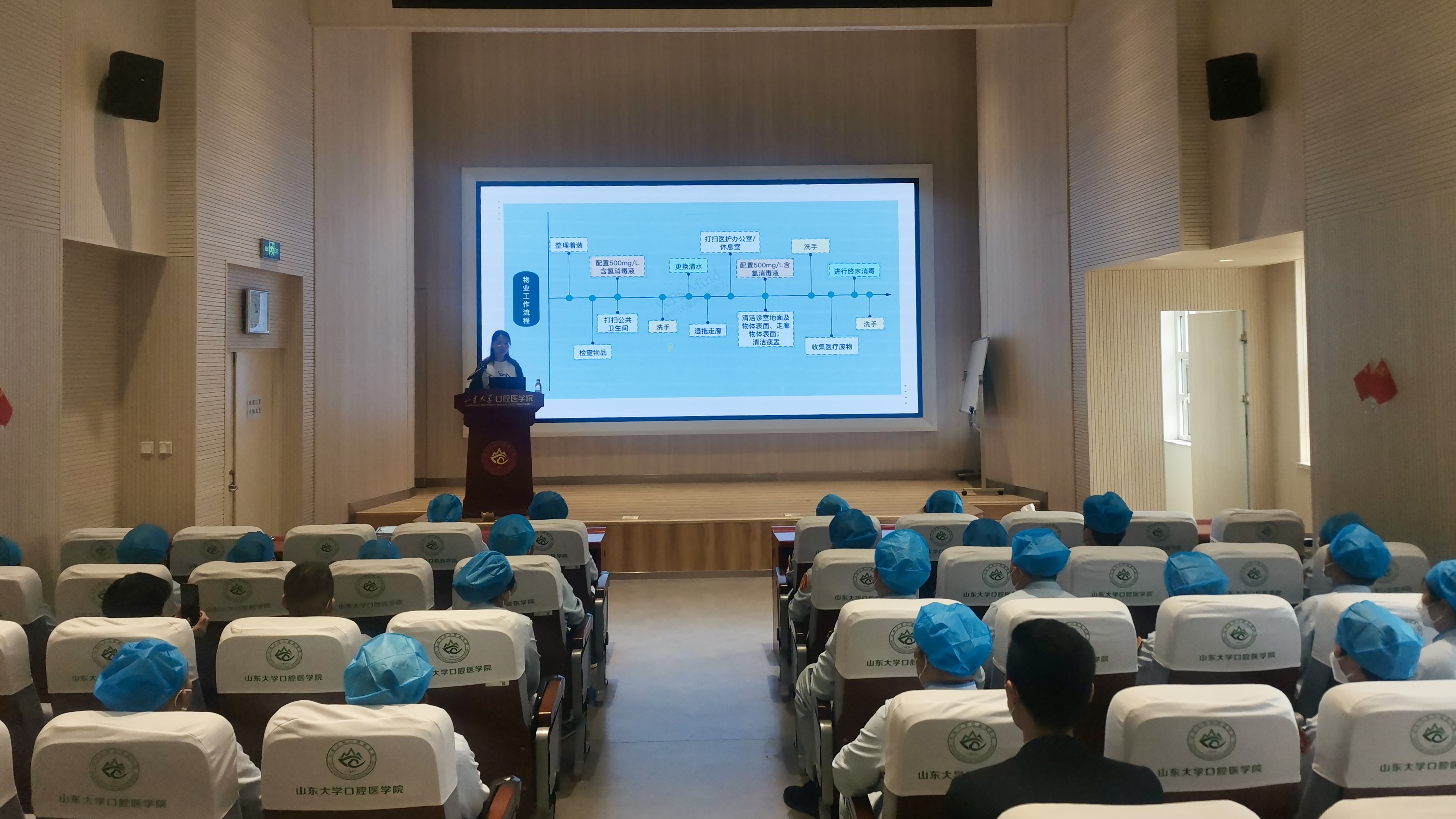 保洁工作是保证医院环境清洁、预防医院感染的基础。为进一步提升医院物业保洁的工作质量,医院感染管理部结合物业人员的工作实际,通过抽查、提问、现场督导等多种形式,查找保洁人员日常工作中存在的问题,通过专项培训形式不断提升物业保洁人员的院感防控技能与知识水平。