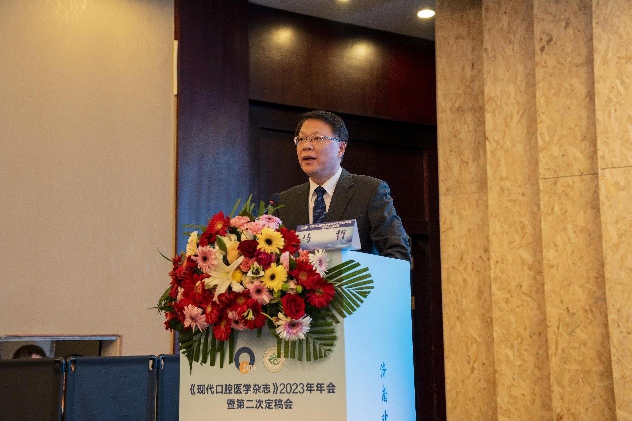 马哲在致辞中指出《现代口腔医学杂志》自1987年创刊以来,在主编和各位专家的带领下,为广大口腔科研工作者搭建了学术交流的平台,河北医科大学口腔医院将一如既往给予大力支持,杂志社也将团结一心,踔厉奋发为杂志发展添砖加瓦。