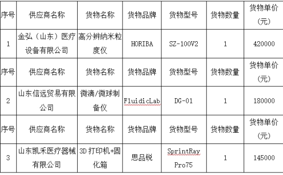 山东省口腔医院(伟德体育官网口腔医院)高分辨纳米粒度仪及微滴/微球制备仪等设备采购项目(1包、2包、4包)成交公告