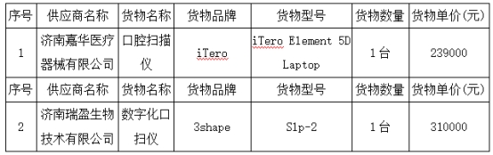 山东省口腔医院(伟德体育官网口腔医院)口腔扫描仪等设备采购项目(1包、3包)成交公告