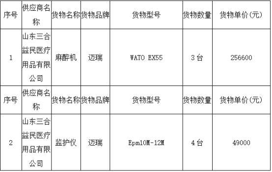 山东省口腔医院(伟德体育官网口腔医院)麻醉机及监护仪采购项目成交公告